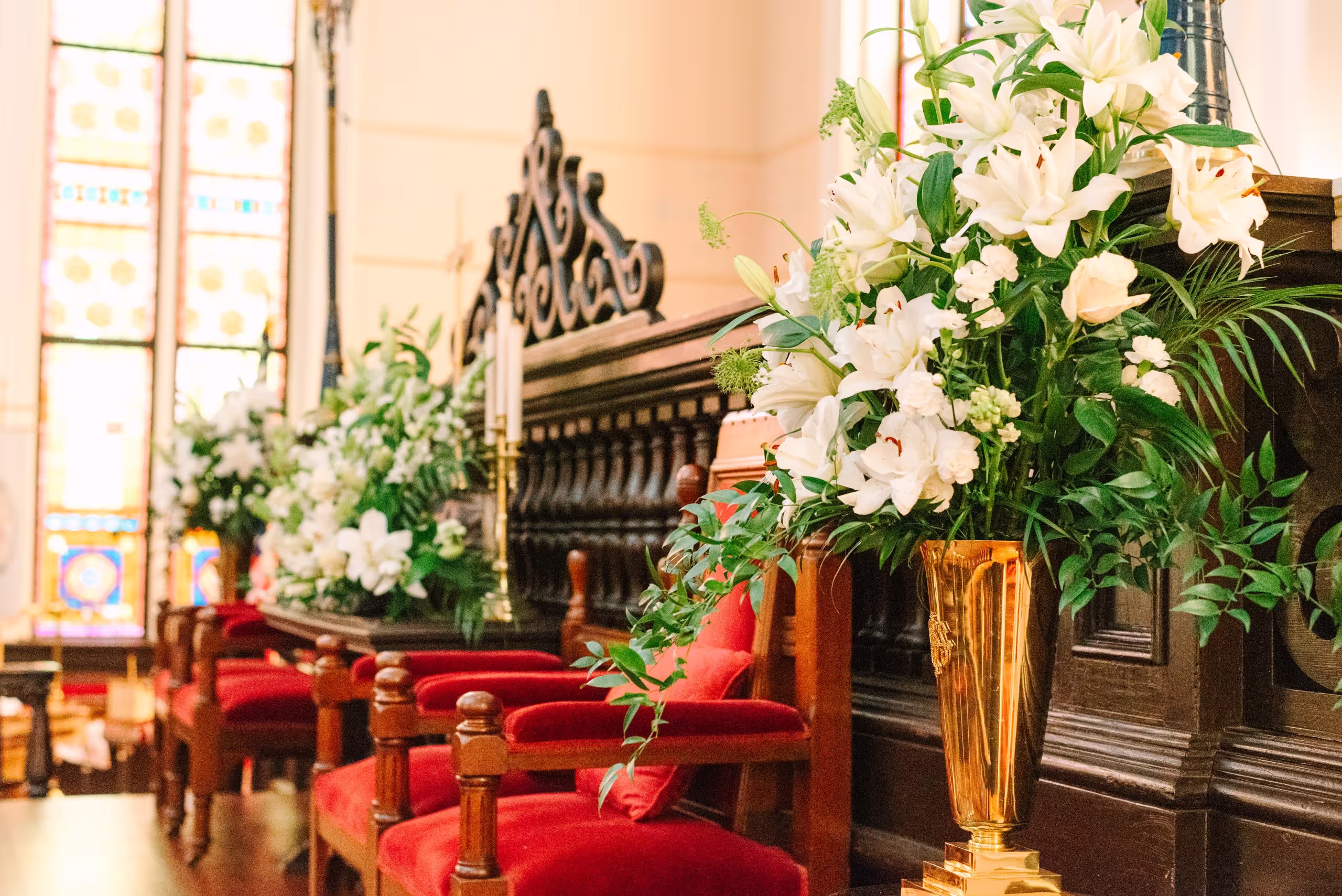 It doesn’t get more classic than white and green florals at a gorgeous country club. The classics were elevated with unexpected greenery and beautiful white lilies throughout this stately country club affair.