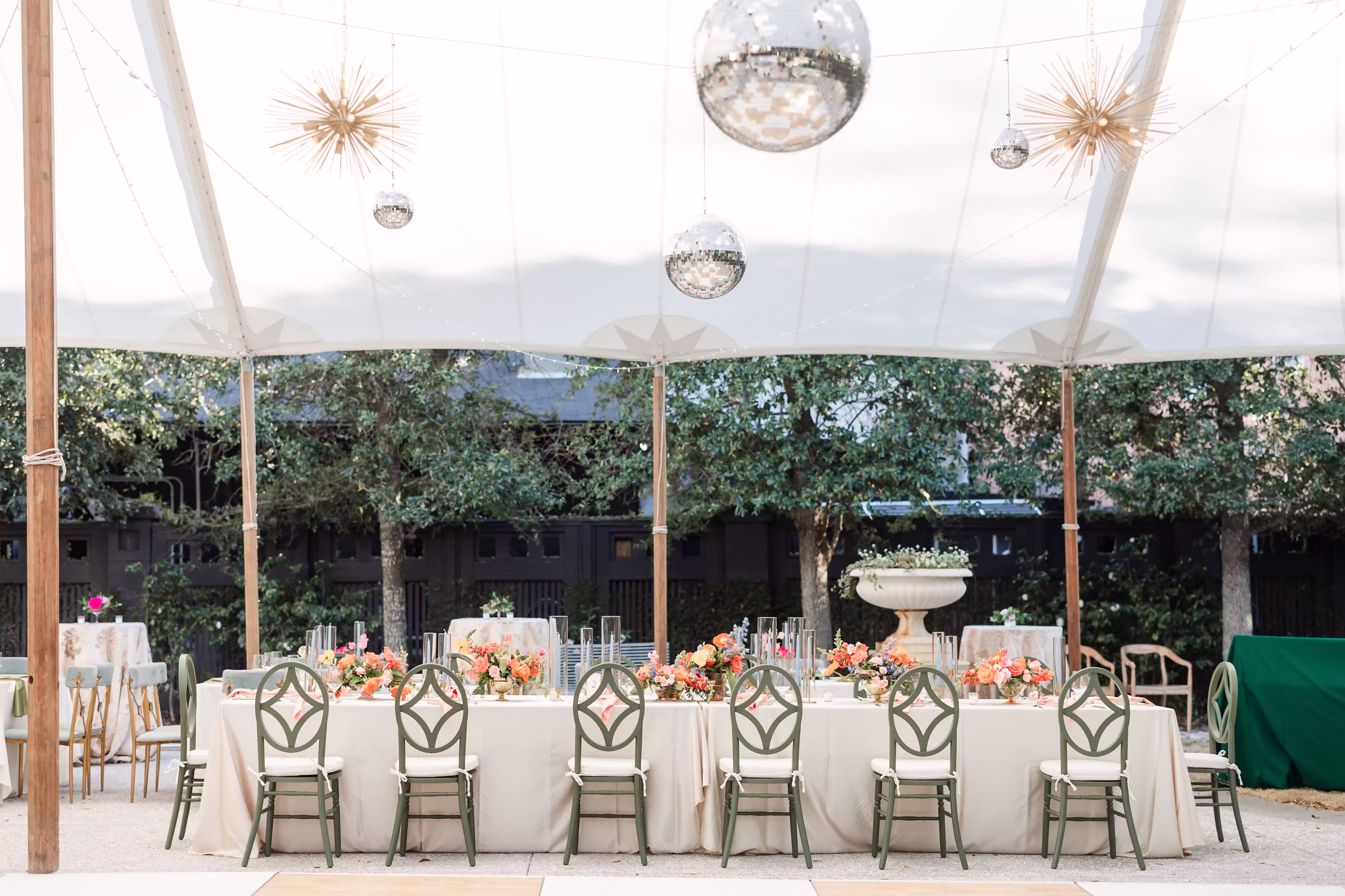 A stunningly chic wedding at the Gibbes Museum of Art — where modern elegance met a touch of whimsy. Soft, romantic textures paired with bold pops of color brought this fairytale floral vision to life in the heart of historic Charleston.