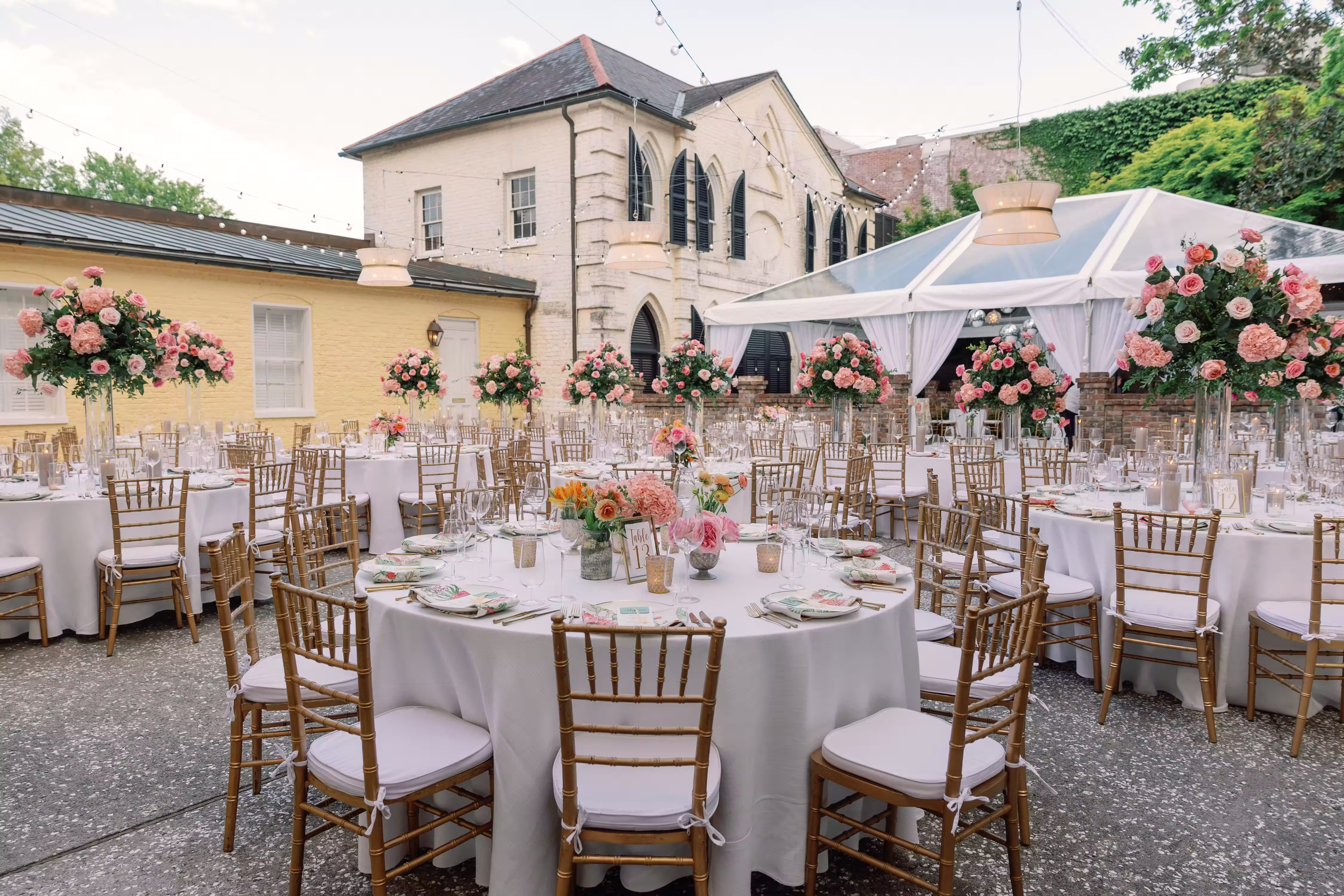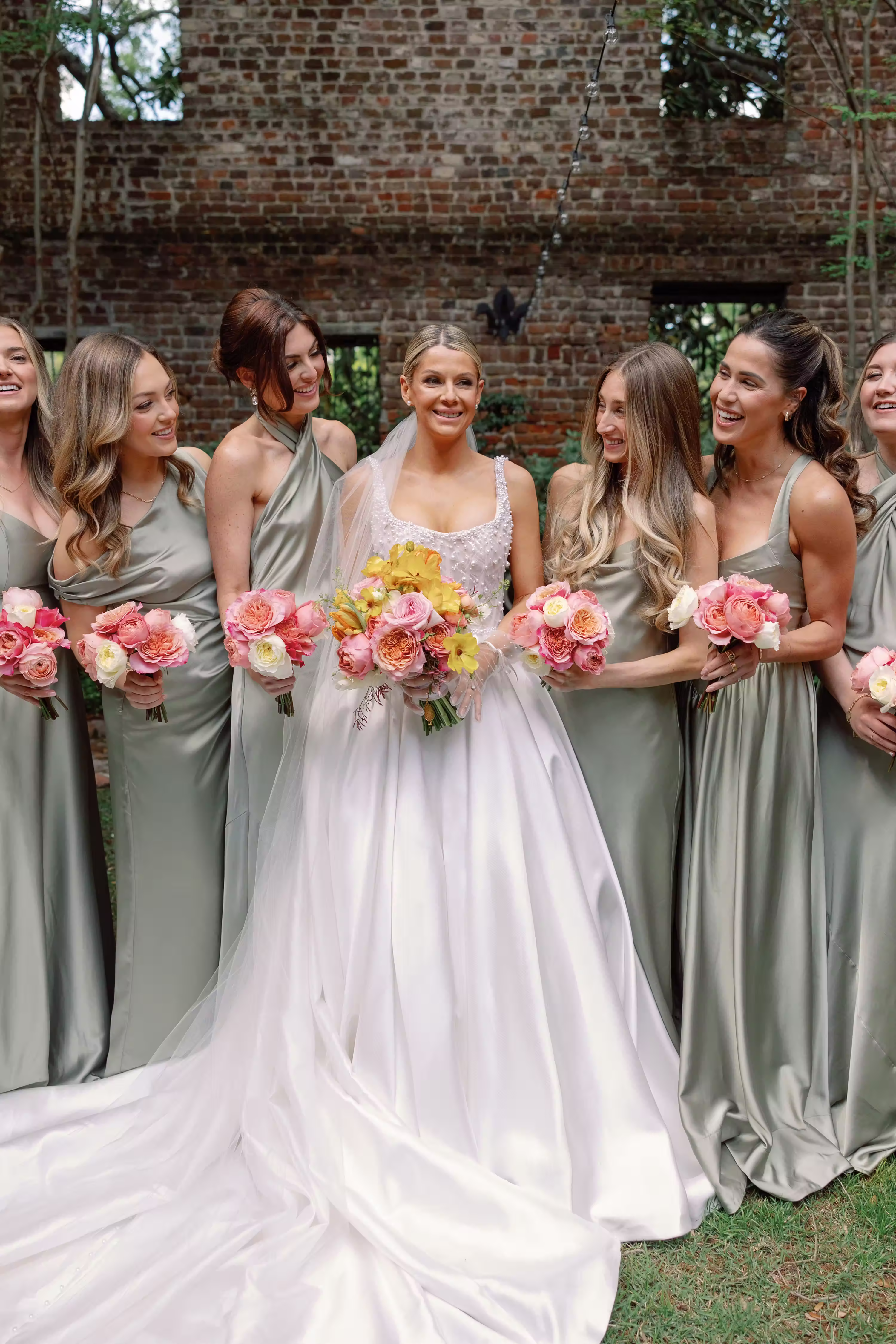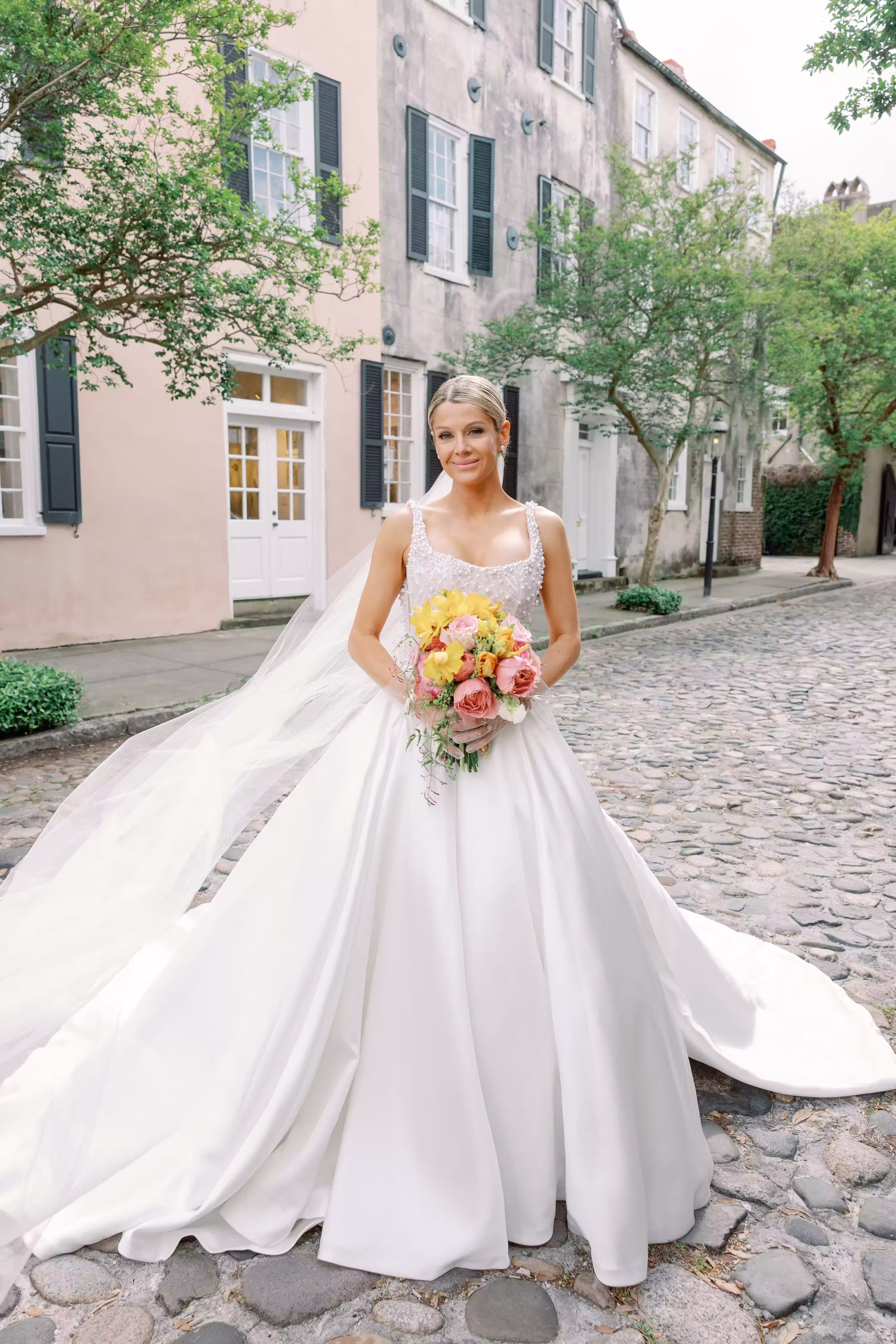 This vibrant and elegant celebration was at the historic William Aiken House in Charleston, SC! Bold, joyful florals in shades of pink, yellow, and coral brought the garden to life in a stunning blend of Southern charm and cheerful color.